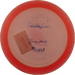 Käytetystä kiekosta löydät kuntoluokituksen lisäksi kolme tuotekuvaa (kansi, pohja ja siipi), painon (g) sekä tiedot tussimerkinnöistä.