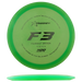 F3 on Prodigy Discin vakaa väylädraiveri, joka tarjoaa pitkän ja hallitun lentoradan pehmeällä loppufeidillä. Se sopii erinomaisesti kaikentasoisille pelaajille ja toimii monipuolisesti eri heittolinjoissa.