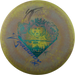 Käytetystä kiekosta löydät kuntoluokituksen lisäksi kolme tuotekuvaa (kansi, pohja ja siipi), painon (g) sekä tiedot tussimerkinnöistä.