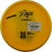 Käytetystä kiekosta löydät kuntoluokituksen lisäksi kolme tuotekuvaa (kansi, pohja ja siipi), painon (g) sekä tiedot tussimerkinnöistä.