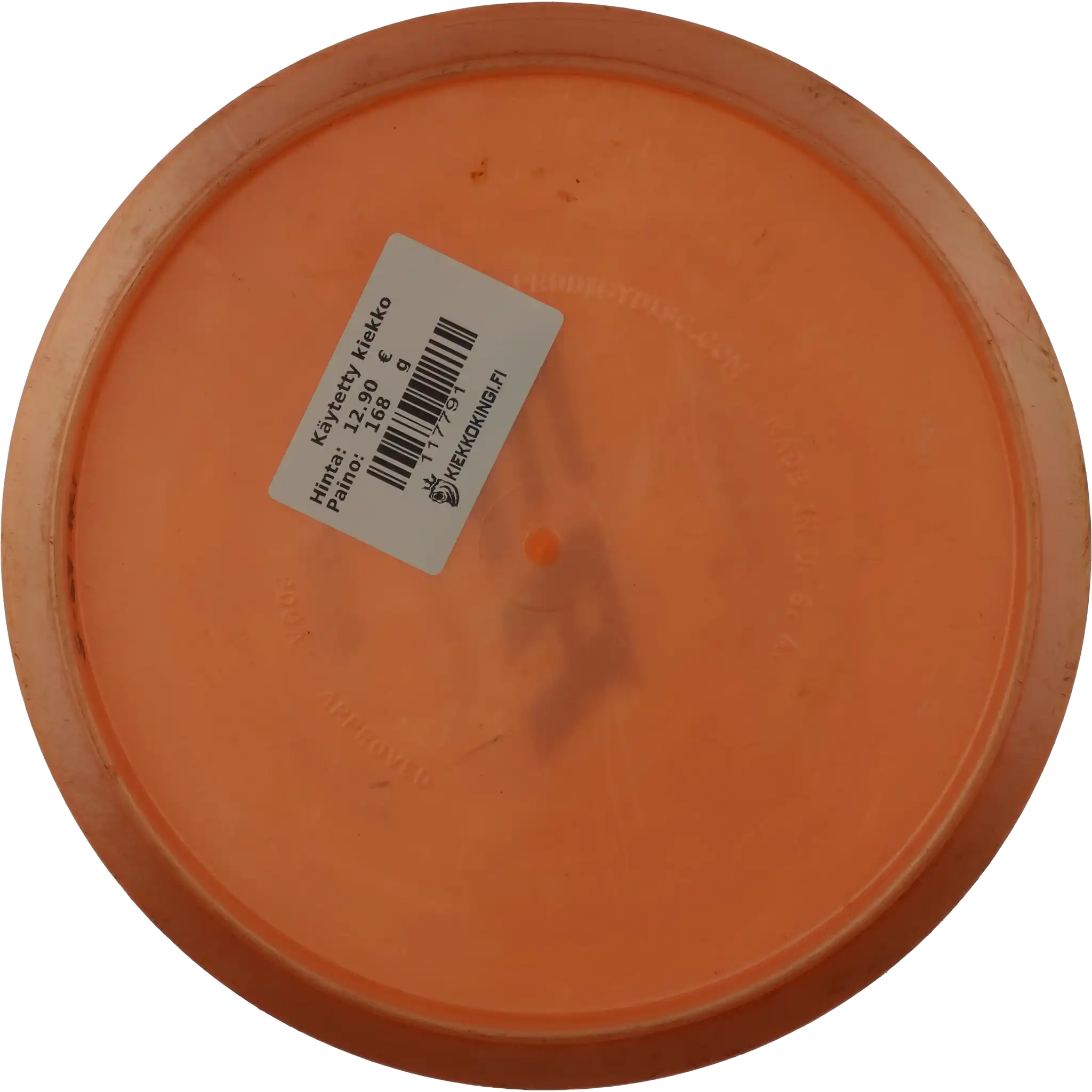 Käytetystä kiekosta löydät kuntoluokituksen lisäksi kolme tuotekuvaa (kansi, pohja ja siipi), painon (g) sekä tiedot tussimerkinnöistä.