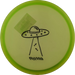 Käytetystä kiekosta löydät kuntoluokituksen lisäksi kolme tuotekuvaa (kansi, pohja ja siipi), painon (g) sekä tiedot tussimerkinnöistä.