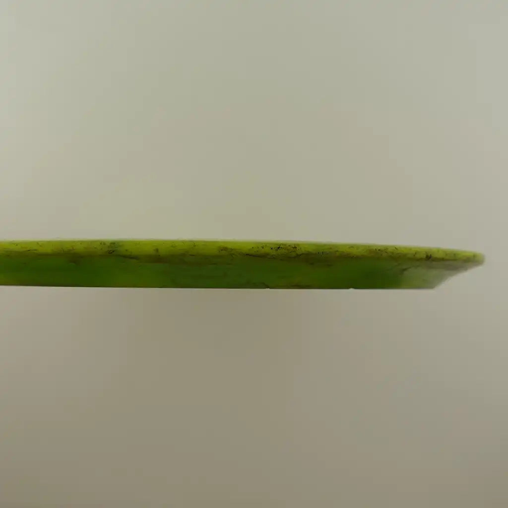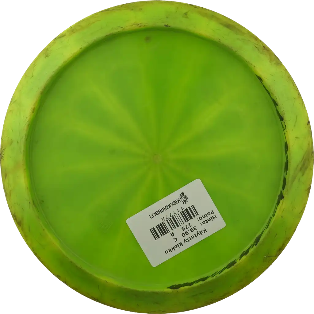 Käytetystä kiekosta löydät kuntoluokituksen lisäksi kolme tuotekuvaa (kansi, pohja ja siipi), painon (g) sekä tiedot tussimerkinnöistä.