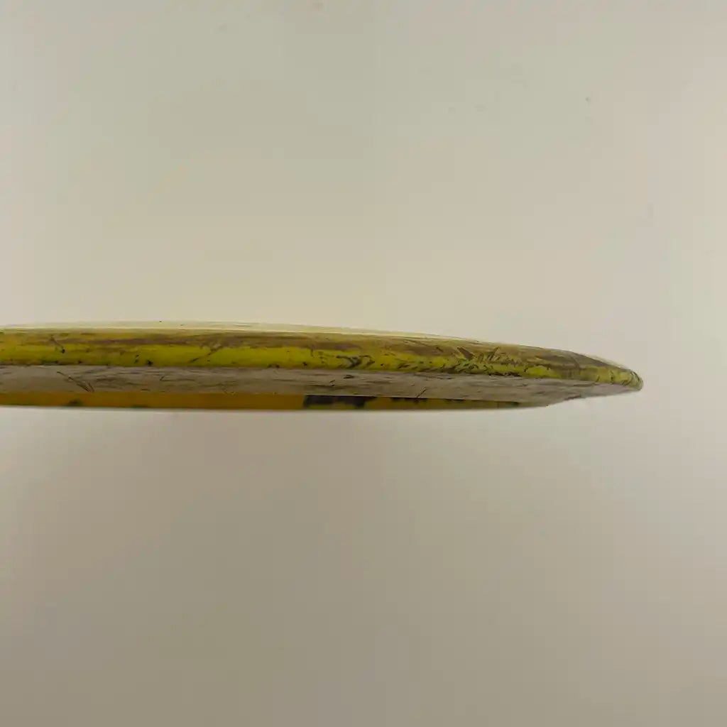 Käytetystä kiekosta löydät kuntoluokituksen lisäksi kolme tuotekuvaa (kansi, pohja ja siipi), painon (g) sekä tiedot tussimerkinnöistä.