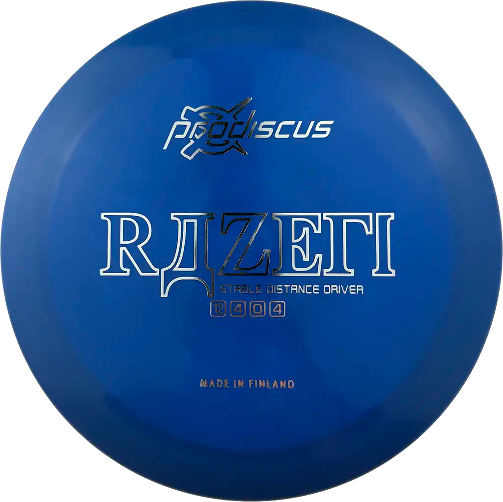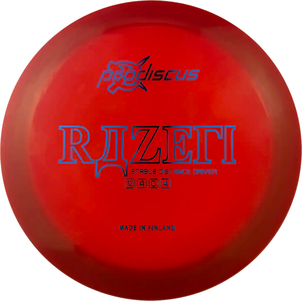 Razeri on Prodiscuksen vakaa pituusdraiveri, joka yhdistää luotettavuuden ja erinomaisen liidon. Se soveltuu hyvin monenlaisiin heittolinjoihin ja tarjoaa varman suorituskyvyn kovassakin käytössä. Razeri onkin ansainnut paikkansa monen pelaajan luottokiekkona.