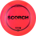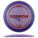 Scorch on Discraftin 11-nopeuksinen pituusdraiveri, joka yhdistää erinomaisen liidon ja luotettavan loppufeidin taitotasosta riippumatta. Se tarjoaa suoran ja varman lentoradan hitaammilla nopeuksilla, kun taas kokeneemmat pelaajat saavat siitä pitkälle kääntyvän ja liitävän työkalun. Scorchin miellyttävä rimmi ja hieman maltillisempi nopeus tekevät siitä loistavan valinnan erityisesti keskitasoisille pelaajille, jotka etsivät lisää heittopituutta.